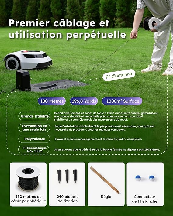 ✅ Surface de tonte : jusqu’à 1000 m²